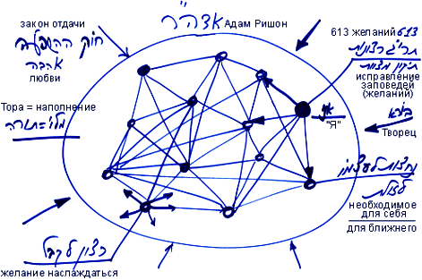 Здесь необходимо объяснить, что была создана система Адама Ришон. Это множество отдельных душ, желаний, которые были изначально связаны друг с другом, как одно тело.
