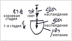 Итак, желание развивалось через четыре стадии прямого света. Свет развил желание от нулевого, корневого уровня (шореш) до ступеней 1, 2, 3 и 4 (алеф, бет, гимел и далет). Таким образом внутри желания образовались его всевозможные уровни. И это не просто количественные уровни, при которых небольшое желание ощущает небольшое наслаждение, а большое желание – большое наслаждение. Кроме того, само это желание развивается, обретая всевозможные виды, согласно тому: от чего я наслаждаюсь, в какой форме, благодаря какому отношению я ощущаю наслаждение.