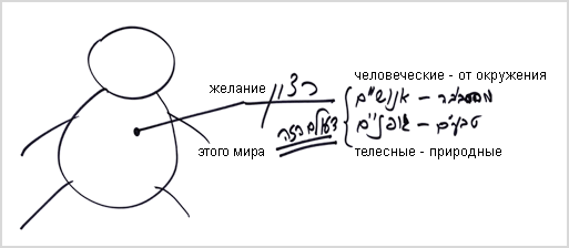 Каббала же говорит иначе: ты должен посредством мысли добиться власти над своим желанием. Поскольку мы хотим развить человека, чтобы он своими желаниями по своему свободному выбору уподобился Творцу.