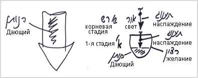 В нулевой стадии свет существовал как наслаждение, и в первой стадии он раскрывается как наслаждение, само же кли – это желание. Кроме этого, от Творца не приходит ничего. Но что же дальше? А дальше внутри этого наслаждения в бхине алеф, когда она развивается, скажем, во второй ее половине, раскрывается Дающий.