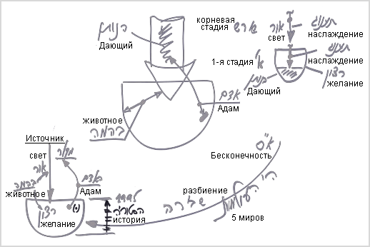 Эти ступени построены уже в такой форме, которая является общей для всех. Общее желание насладиться еще до того, как оно разбилось и разделилось на огромное множество душ, опустилось вниз на множество уровней по своей мощности. Эти ступени называются мирами (аламот), поскольку так, ступень за ступенью постепенно исчезал свет.