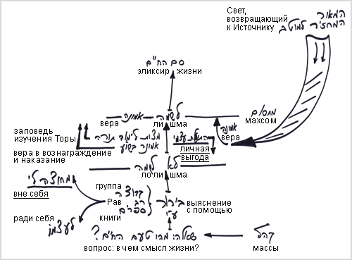 Он пока еще не вызывает на себя свет, возвращающий к источнику в такой форме, когда бы это возвращало его к состоянию, не дай Бог, «летучей мыши» или продвигало его к состоянию лишма, к вере. Он пока только выясняет, для чего стоит работать. А пока он еще не решил, свет не действует на него в каком-то определенном направлении.