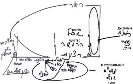Можно сказать иначе. Когда я начинаю взращивать точку в сердце и отслеживать свою связь с духовным миром, то вижу, что эта точка превращается в некий сосуд, в который я получаю ощущения и разум. И тогда я называю свои желания телом, а наполнение - светом. Так что не путайтесь: телом называется и физическое тело, и наши желания в этом мире, и духовные желания в виде тела парцуфа.