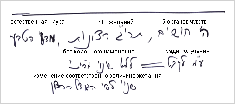 Человек живет на уровне желаний своих пяти органов чувств. Эти 613 желаний, исследуемые естественными науками, не меняются по своей сути, т.е. могут только увеличиваться или уменьшаться без изменения направленности их намерения. Люди, обладающие большими желаниями, становятся учеными и тем самым развивают свои келим до такого уровня, что могут обнаружить ранее неизвестные явления. Но все эти явления относятся к области восприятия наших пяти органов чувств и раскрывают то, что происходит в их 613 желаниях.