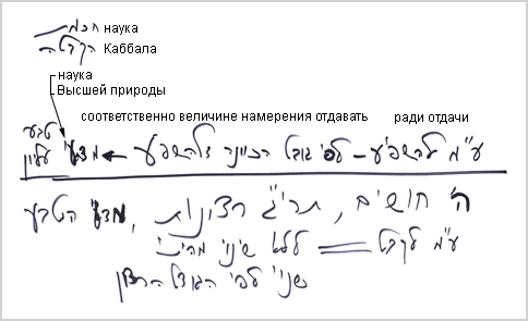 Однако кроме этого существует совершенно иное измерение, где эти желания имеют намерение ради отдачи. И тогда в соответствии с величиной намерения отдачи у нас появляется наука Высшей природы, которая называется наукой Каббала.