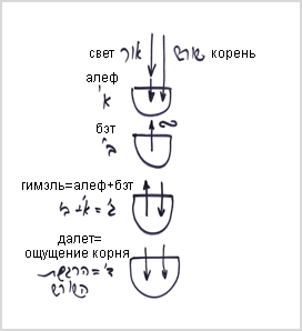 Это можно сравнить с процессом, происходящим в четырех стадиях распространения прямого света. Как известно, свет, называемый корневой стадией, развивает кли желания получать - первую стадию (бхина алеф), которая хочет получать. В результате того, что первая стадия обнаруживает сам корень, она хочет быть отдающей, уподобиться корню – это уже вторая стадия (бхина бэт). Затем она хочет совершить действие, подобное корню, и тогда называется третьей стадией (бхина гимэль). Она немного получает, чтобы показать действие ради отдачи. Таким образом, третья стадия, по сути, состоит из первой и второй стадий вместе. А затем начинает проявляться желание полностью уподобиться корню, называемое четвертой стадией (бхина далет). Четвертая стадия – это уже ощущение корня.