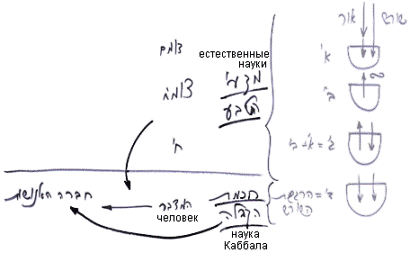 В соответствии с этим можно сказать, что наши естественные науки относятся к первым трем стадиям. А наука, которая достигает ощущения источника природы, т.е. Того, Кто облачен внутри внешней природы, это и есть наука Каббала. Предваряющие ее науки относятся к неживому, растительному и животному уровням. Эти уровни мы способны обнаружить - все, кроме уровня человека, который раскрывается только с помощью науки Каббала. Следовательно, упорядочить все относящееся к человеческому уровню, в том числе и существующее в этом мире, можно только с помощью науки Каббала.