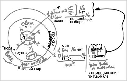 Это очень хороший вопрос. Пока что мы говорили с вами о том, что я нахожусь в своем маленьком мире - в этом мире, и нахожу в нем группу, которая стремится быть в Высшем мире, в подобии Творцу. И поэтому я желаю, чтобы группа, а не этот мир, оказывала на меня влияние. Мы говорили, что в этом заключается мой свободный выбор – предпочесть влияние группы, а не этого мира. Я уже вполне осознал, что этот мир только убивает, и ему нечем на меня влиять, кроме своей рекламы что купить, за чем гнаться и что надо делать в жизни. Мир сам обнаруживает насколько он глуп.