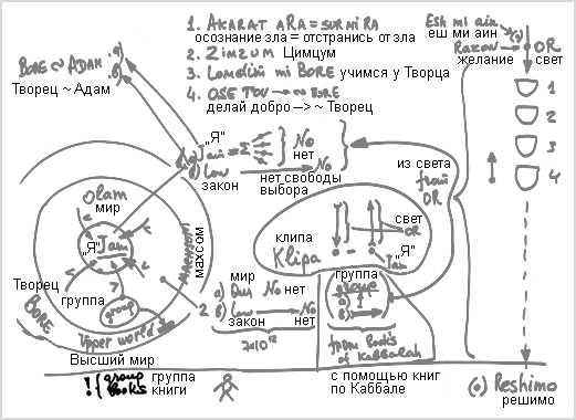 Но по сути это делаю не я. Когда человек раскрывает книгу и читает то, что написано, то он читает о Высшем мире. Он читает о себе, находящемся на более высокой ступени. Потому что мы все там находимся, это лишь скрыто от нас, но мы там уже находимся. И тогда из этого состояния к нему приходит так называемый окружающий свет (ор макиф), который пробуждает точку в сердце.