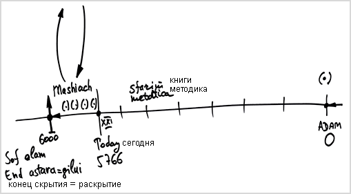 Мы начинаем отсчет с того времени, когда впервые раскрылась точка в сердце у творения по имени Адам. Мы считаем это нулевым годом, и с тех пор до нашего времени прошло 5766 лет. И нужно достичь 6000 лет, «соф а-олам» (конца мира), что означает «соф» - конец и «олам» - от слова «алама», скрытие. Слово «мир» (олам) происходит от слова «скрытие» (элем). Это означает что максимум за шесть тысяч лет, мы должны придти к окончанию сокрытия, и все должно раскрыться. Должно произойти раскрытие.