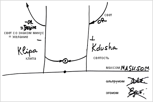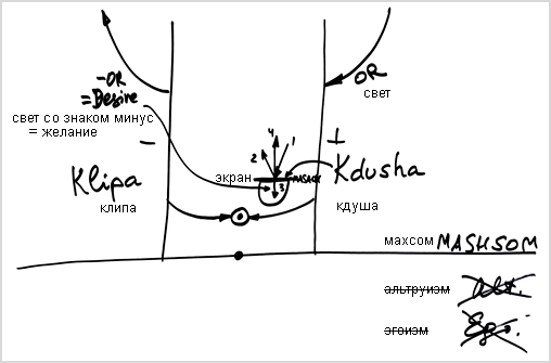 Как это происходит? Это очень просто, мы даже изображаем это следующим образом: внизу находится желание, а за его пределами, над ним расположен экран (масах). И тогда приходит свет, я произвожу расчет и принимаю его ради отдачи.