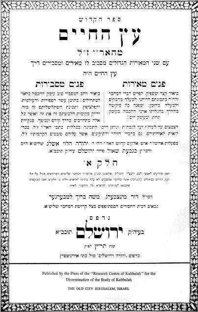 Его первый ученик, тогда еще совсем молодой, 28-летний Хаим Виталь [22], записал все, что услышал от АРИ за полтора года обучения. На основе его записей впоследствии было издано около 20 томов сочинений АРИ, умершего в возрасте 38 лет. Основной труд АРИ – книга «Эц Хаим» («Древо Жизни»). Кроме нее, наиболее изучаемыми являются: «Шмоне Шеарим» («Восемь врат») и «Шаар Каванот» («Врата намерений»).