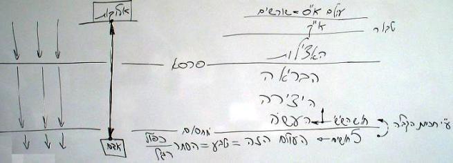 Нарисуем ее ниже всех - этот мир, здесь мы находимся, а выше этого уровня есть махсом. Махсом - это такая линия, которая разделяет наш мир, то есть реальность, которую мы открываем с помощью пяти органов чувств и реальность, которую мы открываем с помощью шестого органа чувств.