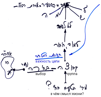 Мы уже рисовали сегодня эту схему: я нахожусь в группе и использую свой свободный выбор для того, чтобы группа поставляла мне важность цели. И тогда я могу быть уверенным, что независимо от своего желания буду находиться под ее влиянием. Как я получаю от общества всевозможную рекламу якобы нужных мне вещей, так и здесь. Пока я в них не нуждаюсь и не испытываю к ним желания, но окружение повлияет на меня - и я захочу. А в том случае, если человек использует общество для того, чтобы направить себя к цели, то приходящий к нему свет действует и продвигает его.