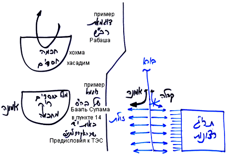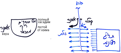 А полная вера представляет собой состояние еще более высокое: в моем кли есть свет хасадим, в который я получаю свет хохма с целью его отдать. Это состояние иллюстрирует пример РАБАШа в отличие от примера Бааль Сулама, приводимого в четырнадцатом пункте данной статьи.