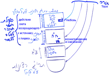 Можно добавить, что этап приобретения свойства веры называется управлением вознаграждением и наказанием, а приобретение намерения получать ради отдачи называется управлением любовью. Этот этап в свою очередь тоже состоит из нескольких уровней, которые мы будем изучать в продолжение статьи. И хотя весь путь человека происходит под воздействием света, возвращающего к Источнику, который называется Тора, но в особенности его специфическое действие проявляется при подъеме человека от свойства хафэц хэсэд - приобретения веры - до Конца исправления.