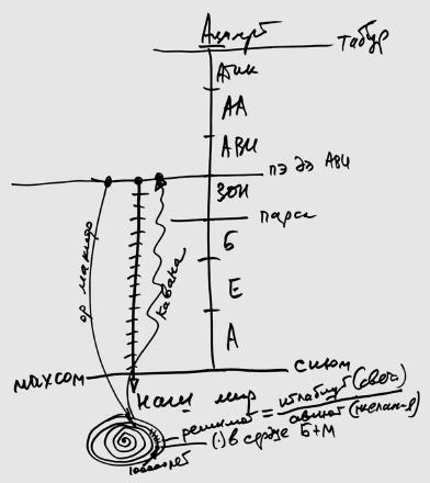 И все ступеньки, по которым кли падало с уровня мира Ацилут до нашего мира, существуют сейчас в нашем мире, где мы находимся, в виде решимот, в виде спирали (см. рисунок).