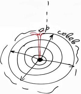 И когда протянулся луч света из Бесконечности (линия на рисунке), прямая из круглого света, протянулась сверху вниз, опустилась, и спустилась внутрь пространства того…