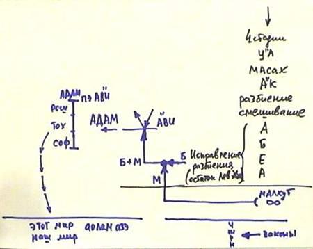 В эту схему можно вложить огромное количество второстепенных, третьестепенных событий, объяснять их с точки зрения высшего течения света и отражения корней в нашем мире. Это вся наша история, которую можно изложить на сопоставлении духовных действий с их земными ветвями.
