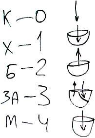 - Бхинот - шореш, один, два, три, четыре или ноль, один, два, три, четыре или шореш, алеф, бэт, гимель, далет.