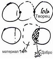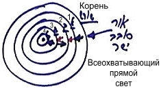 Концентрические окружности можно было бы нарисовать и иначе. Представим себе, что Творец находится извне, а развитие творения идет снаружи внутрь. Тогда корневая стадия оказывается внешней по отношению к остальным, а последняя стадия внутри – это бхина далет. Так каббалисты отображают развитие на этих четырех этапах, хотя в принципе, рисовать их можно по обоим трафаретам.