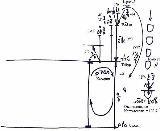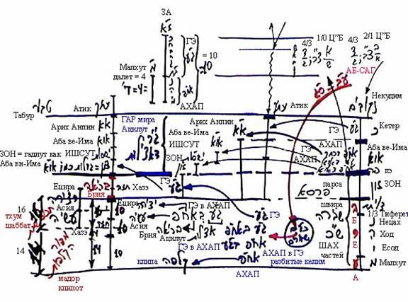 В результате этого разбиения образовались чистые келим Гальгальта-Эйнаим, чистый АХАП, Гальгальта-Эйнаим в АХАП и АХАП в Гальгальта-Эйнаим – все четыре варианта смешения, которые могут получиться из двух видов келим.
