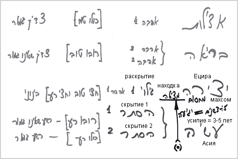 Я попытался свести все сказанное в одну таблицу, которую можно еще расширить, добавив определения, данные Бааль Суламом. Я просто не успел за время чтения ввести все. Главное для нас - не путаться и четко понять, кто находится в двойном и простом сокрытии. Это человек, который трудится и прикладывает усилие, как сказано: «приложил усилие и нашел». И когда он достигает «находки» - раскрытия лика, то считается достигшим мира Ецира. То есть труд и усилие относятся к миру Асия, а находка раскрывается в мире Ецира. Между ними проходит махсом. И Бааль Сулам говорит, что период приложения усилия до того, как человек удостаивается раскрытия, длится в лучшем случае от трех до пяти лет.