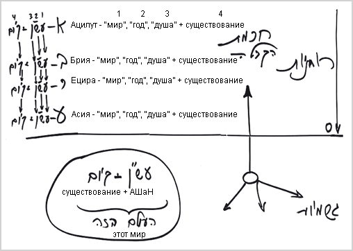 Это значит, что каждая деталь в этом мире состоит из четырех частей: олам (мир), шана (год), нэфеш (душа) – сокращенно АШаН, и их существование.