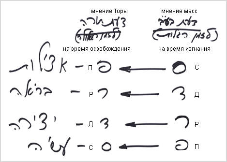 Следовательно, есть мнение Торы и есть мнение масс, которые думают, что изучают простой смысл. Но что они в нем понимают? Ни Кто дал им Тору, ни зачем дал, ни что там написано! Повторяю: такое понимание относится к периоду изгнания. Оно было необходимо в ситуации, когда народ Израиля находился под властью народов мира, поскольку «каждый осуждает в меру своих недостатков».