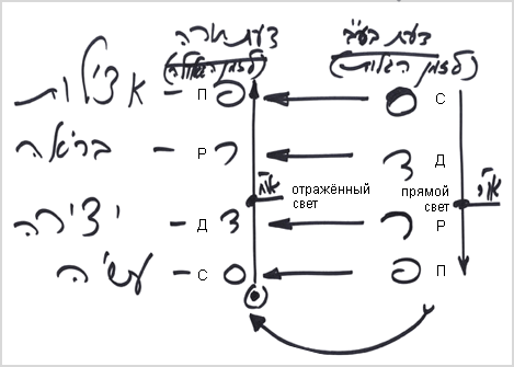 Но с наступлением времени избавления мы должны понять, что первый порядок соответствует четырем стадиям прямого света, а второй говорит с точки зрения отраженного света. Состояния изгнания и избавления отличаются совершенно противоположным подходом и отношением к жизни. Избавление призвано раскрыть Творца, что возможно только в отраженном свете. Поэтому весь подход, вся Тора противоположна в движении снизу вверх, так как соответствует просьбе, МАНу, который пробуждается в человеке из точки в сердце. И тогда все отношения и определения становятся обратными.