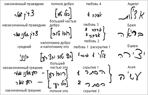 Далее, первая стадия раскрытия лика – это стадия «мира Ецира», и потому написано в книге «Древо жизни» (Врата 58, ч.3), что мир Ецира являет собою наполовину добро и наполовину зло. Иными словами, первая стадия раскрытия лика является первой стадией зависимой любви, именующейся всего лишь «возвращением из трепета»; и тот, кто постигает ее, называется «средним», будучи наполовину виновным и наполовину оправданным.