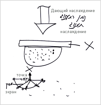 Есть высший свет, в этом свете заключено наслаждение и Дающий наслаждение. Все это приходит к кли, на котором стоит экран. Это идеальная схема, и таким образом все должно облачиться одно в другое.