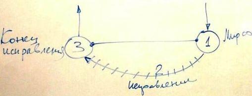Бааль Сулам изображает это как три состояния. Он говорит о том, что мы находимся в первом, изначальном состоянии, которое создано Творцом Свыше. Проходим какое-то состояние, называемое исправлением, – это состояние два, и приходим к третьему состоянию, исправленному, которое называется "Конец исправления", в нем мы полностью все отдаем Творцу. Поскольку для Творца нет времени, все, что Он создал – это мир Бесконечности. Он создал и первое состояние, и третье состояние – для Него они являются закороченными между собой. То есть Он вообще не создал ничего, кроме мира Бесконечности.