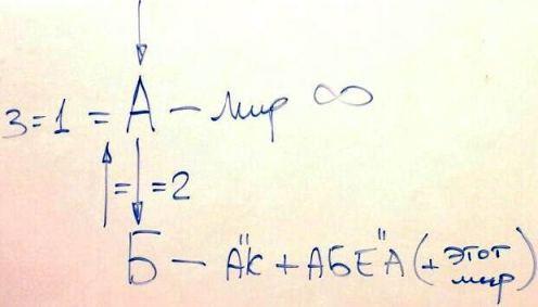 В итоге из мира Бесконечности происходит нисхождение в эти миры, и снова мы возвращаемся в мир Бесконечности. То есть, происходит разделение всего мироздания на две части, но они соответствуют друг другу. То есть, одно состояние эквивалентно другому, и тогда первое состояние обращается в третье.