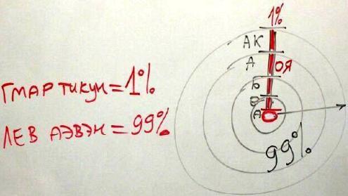 Если эта линия, допустим, 1% света, то снаружи, остается 99% света. Гмар Тикун означает, что мы исправляем 1%. Гмар Тикун – это когда мы получаем 1%. И затем, когда исправляется лев а-эвен, исправляются еще 99%.