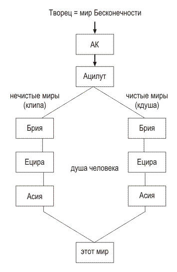 После разбиения начинают выстраиваться две параллельные системы миров Асия, Ецира, Брия – альтруистическая и эгоистическая.