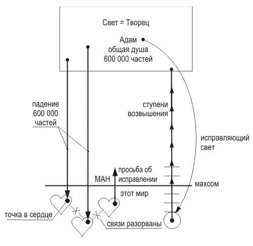 При разбиении парцуфа Адам Ришон его тело разделилось на 600000 частей [398] – частных душ. Каждая из этих частей должна в течение 6000 лет [399], ступеней, совершить свое частное исправление.