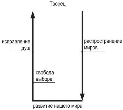Распространение и отдаление от первоначального Замысла, вплоть до форм ему противоположных, называется «распространением миров сверху вниз» – удалением от Одного, Единого, Единственного, объединяющего в Себе все противоположности.