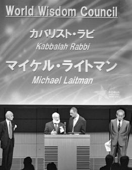 Фото 4. Лекция доктора Михаэля Лайтмана на симпозиуме по построению новой цивилизации, организованном Всемирным Советом Мудрости в Токио в ноябре 2005 года. Слева от доктора Михаэля Лайтмана – профессор Эрвин Ласло.