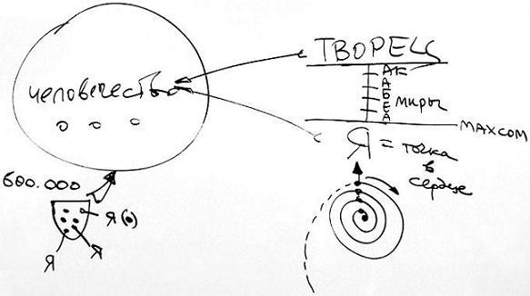 Давайте, нарисуем такую картинку: «Я» – каждый из нас, Творец, и все человечество, или все это кли общее, – человечество. Между мной и Творцом миры: Асия, Ецира, Брия, Ацилут и Адам Кадмон. Если я хочу приблизиться к Творцу, то что мне надо сделать? Я должен относиться к человечеству, этому общему кли, так же, как Творец. «Я» – это точка в сердце. В таком случае я прошу раскрытия Творца.