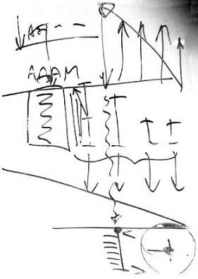 Только после того, как упали все келим вниз, и, соответственно, все света ушли вверх, только после этого самое последнее решимо, которое разбилось (а какое решимо самое последнее разбилось? Самое тоненькое), оно остается выше всех, ближе к свету. Все решимот располагаются по мере своего авиюта, по мере своего эгоизма. Получается, что здесь - больший эгоизм, а здесь - меньший эгоизм. Вот самое маленькое решимо – стало здесь, а здесь – света, и свет располагается соответственно. И вот этот свет начинает действовать на это решимо естественным путем.