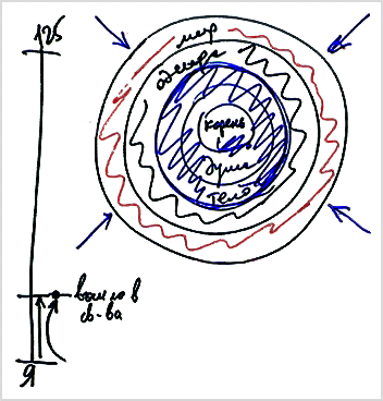 Почему я нарисовал одно в другом? Потому что места не существует, Творец и творение находятся вместе, полностью слиты в одно целое.