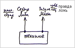 У меня есть мое желание – то, что мы называем «рацон лекабель» (желание получать наслаждения), и оно должно быть уподоблено Творцу. Уподобиться Творцу я могу как бы по двум каналам, в двух видах: это «моха» и «либа» («либа» – это сердце на арамейском, «моха» – от слова «моах» – это разум). Сердце ощущает наслаждение или страдание; разум ощущает правду и ложь.