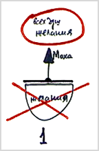 То есть моха в нашем случае означает полное отключение от себя, Цимцум Алеф: «Нет меня совсем; все, что есть, находится вне меня, направлено от меня наружу».