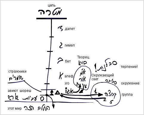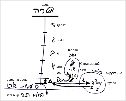 У нас есть цель. К этой цели я должен прийти с нуля – с авиюта шореш. Чтобы достичь ее, мне нужно пройти через авиют алеф, бет, гимел и далет.