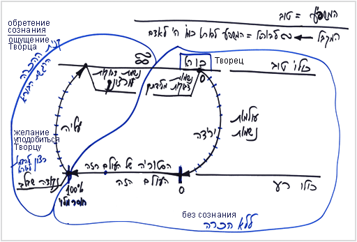 И тогда души начинают путь возвращения на прежний уровень, в то же состояние слияния с Творцом, в котором они пребывали изначально. Но в самом начале души были слиты с Творцом, можно сказать со времени своего рождения в естественной форме, а в конце процесса они сливаются с Ним по своему желанию. Это состояние называется состоянием Бесконечности, это состояние подобия Творцу.