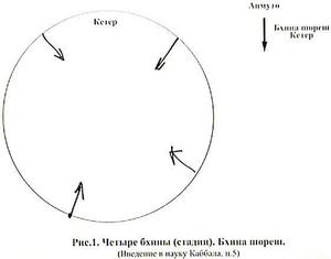 Что значит «пять парцуфим»? Она делит себя на четыре стадии, рассчитывая так: «Если у меня будет экран на все мое желание, значит я буду получать свет Ехида, если на четыре вида желания - свет Хая, если на три вида желания, то свет Нешама, если на два вида желания, то свет Руах, если на один вид желания, то свет Нефеш». Так получается НаРаНХаЙ – пять светов, соответственно пяти ступеням экрана.