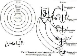 И это все происходит в мире Адам Кадмон, состоящем из пяти ступеней: Гальгальта, АБ, САГ, МА, БОН. В них есть, соответственно, желания - четыре, три, два, один, ноль. В зависимости от силы экрана, эти желания наполняются светами НаРаНХаЙ: Нефеш, Руах, Нешама, Хая, Ехида.