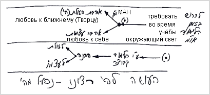 Все это уже врезалось в меня и существует во мне. Я обязан как можно больше подняться над внешним проявлением, и увидеть желание товарища – к чему он стремится, к какой цели. Согласно этому он становится моим товарищем - по направлению к той же цели. А его внешнее проявление ни в чем не должно мне мешать. Мы должны увидеть просвечивающую сквозь нас систему Адама Ришон, где каждый наполняет себя общим поручительством.
