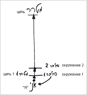 Затем мне необходимо окружение, способное потянуть меня к цели, которая согласно моему сердцу кажется мне верной. Выбрав окружение, я должен в него включиться, чтобы оно своим воздействием как можно быстрее привело меня к желаемой цели. Это будет цель №1. Достигнув ее, я должен избрать следующее окружение №2 согласно цели, которую приму в своем новом состоянии.
